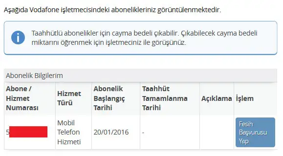 - İlgili aboneliği seçerek “Fesih Talebi Oluştur” butonuna basın.