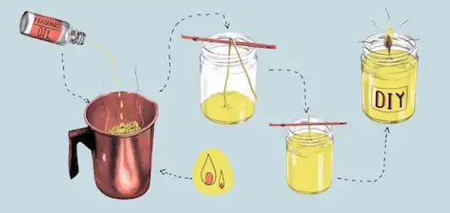 Evde mum yapımı için adım adım yapılması gerekenler şunlardır: