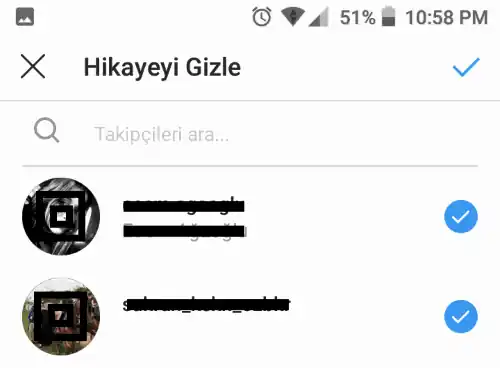 | Belirli kişilere gizle | Belirli takipçilerin yayını görmesi engellenir |